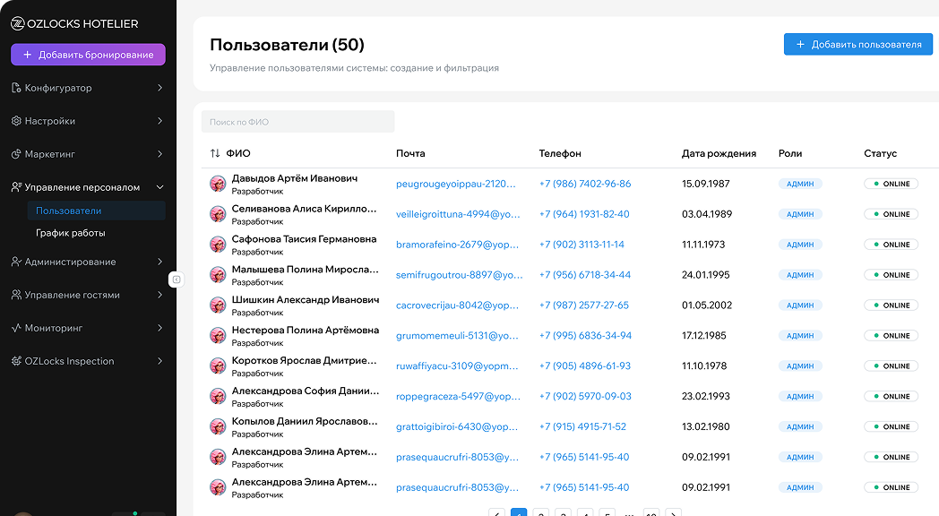 Пользователи, роли, графики работы, документы и карты — вся информация о сотруднике в одном месте