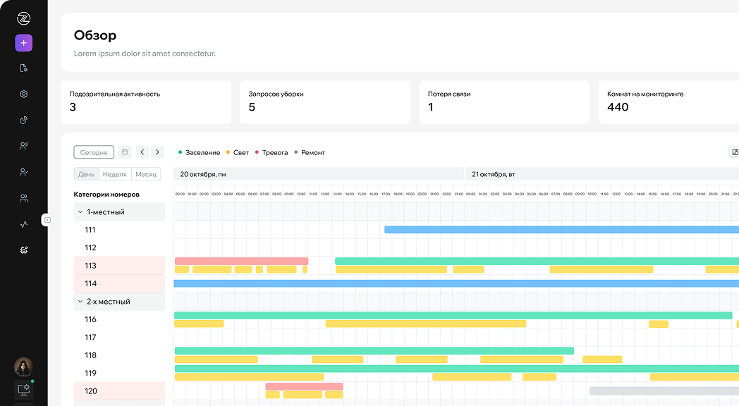 Функционал системы ориентирован на отели, где вопросы безопасности и комфорта постояльцев находятся на самом высоком уровне контроля.