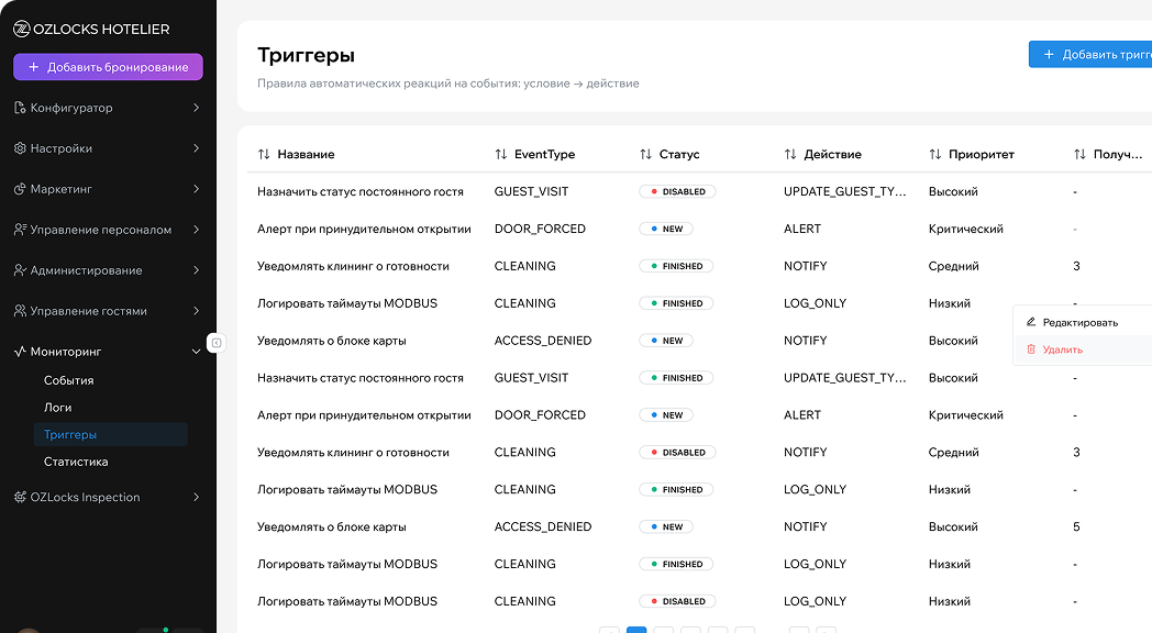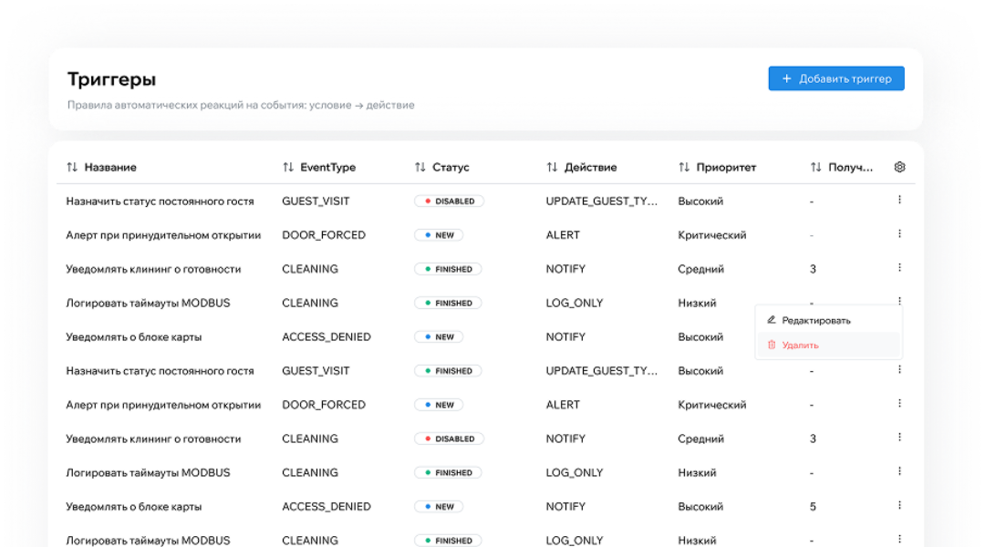 Функционал системы ориентирован на отели, где вопросы безопасности и комфорта постояльцев находятся на самом высоком уровне контроля.
