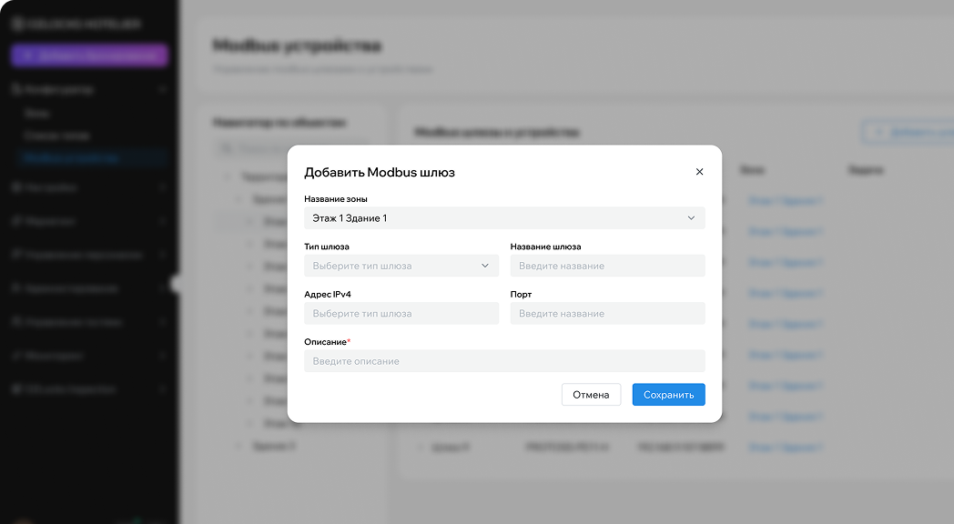 Поддержка FIAS, Modbus и других интерфейсов для связи с PMS и инженерными системами